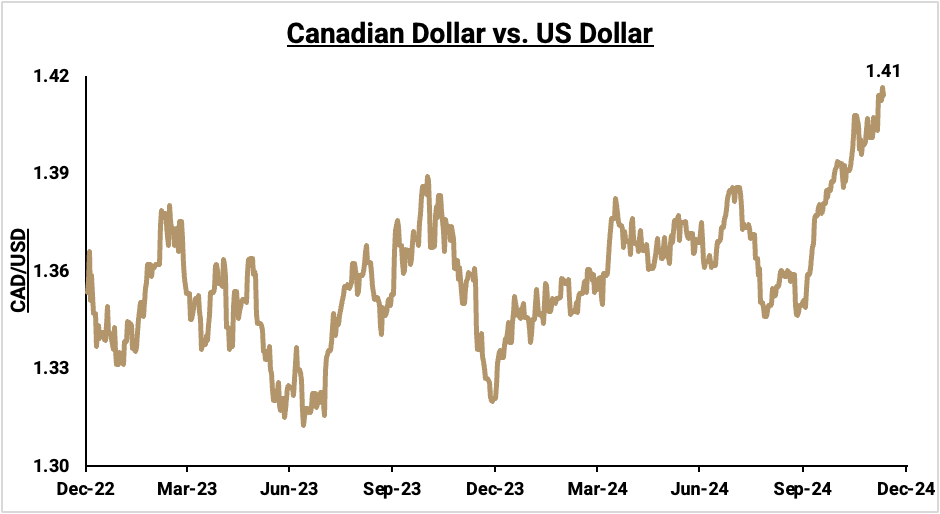 Currency markets have also reacted strongly to the Bank’s actions. The Canadian dollar has continued to weaken significantly against its U.S. counterpart, nearing its lowest level since April 2020. While this depreciation improves the competitiveness of Canadian exports, it raises the cost of imports, adding potential inflationary pressures for consumer goods. The currency’s weakness also complicates policymaking, as the Bank must balance the benefits of a weaker dollar with the risks of excessive depreciation.