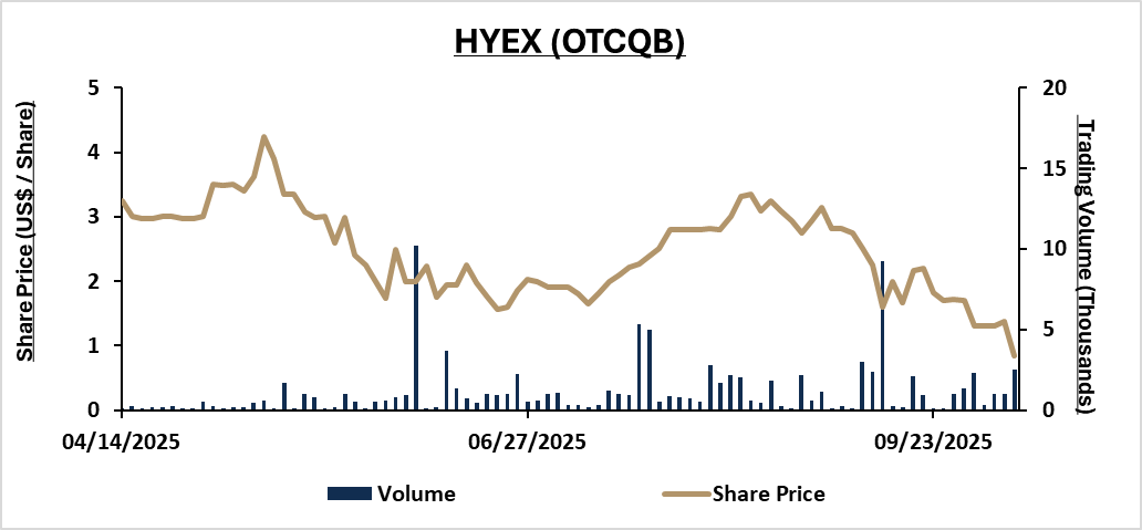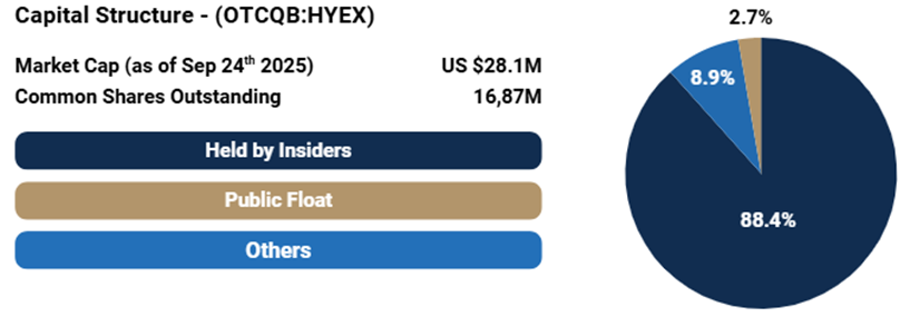 Looking ahead, HYEX is actively advancing toward an uplisting to a major exchange to enhance liquidity and unlock institutional investor participation. The roadmap includes sustained revenue growth beyond $20M+, strengthening governance and board independence, measured expansion of public float, and continued execution on a pipeline of IP-rich, clinically validated products.
